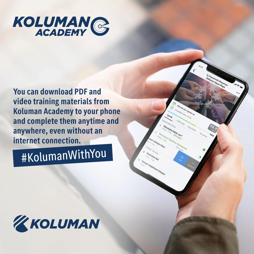 Sürekli gelişim, değişen dünyada başarılı olmanın en önemli anahtarıdır. Bu bakış açısıyla hayata geçirdiğimiz Koluman Akademi, şirket içi bilgi paylaşımını güçlendiren, çalışanlarımızın yetkinliklerini geliştirmelerine olanak tanıyan ve uzmanlıklarını daha ileriye taşımayı hedefleyen bir dijital bir eğitim platformudur. 3000’den fazla, alanında uzman eğitmenler tarafından ve farklı kategorilerde hazırlanmış video eğitimleri, interaktif içerikler ve okuma kaynaklarını bir araya getirerek, öğrenmeyi herkes için kolay ve erişilebilir hale getirmektedir. Çalışanlarımızın kariyer yolculuklarını destekleyen bu platform, aynı zamanda şirketimizin kurumsal bilgi birikimini koruyarak geleceğe taşımayı hedefler.